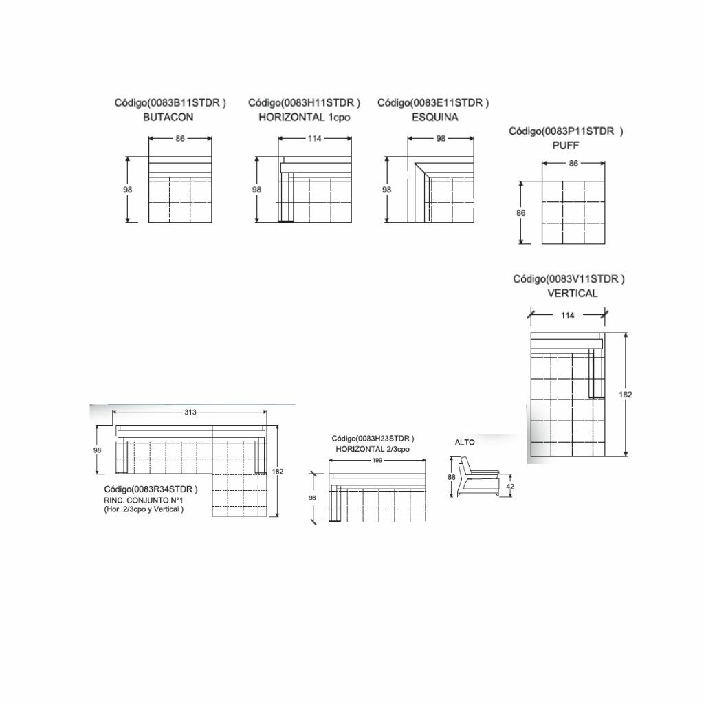 En la parte de los asientos lleva cincha elástica tensa, para un mejor sostén de la goma espuma y por encima de la cincha está la placa 26kg de densidad (Densidad Alta), Super Soft y confortable. El resto del engomado general del sillón y la parte de los almohadones del respaldo están compuesto con espuma de 18kg de densidad.